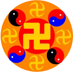 Свастика — святий символ у буддизмі, індуїзмі, джайнізмі, зороастризмі, бон. Крім того, свастика була символом багатьох богів: Зевса, Геліоса, Гери, Артеміди, Тора, Агні, Брахми, Вішну, Шиви, Ганеші, Сур'ї. В Індії також застосовують як оберіг по боках дверей хати. Існує припущення, що за часів неоліту свастику пов'язували з «громом» і «водою»[4]