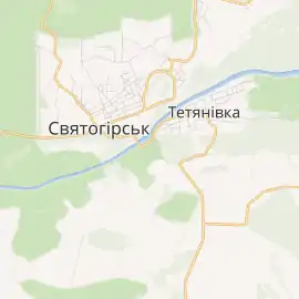 Розташований біля підніжжя крейдяних (Святих гір), на правому березі річки Сіверський Донець (біля міста Святогірськ, Донецька область, Україна)
