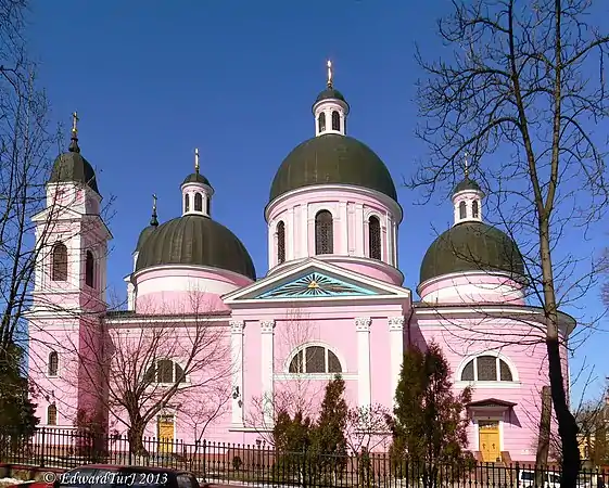 Собор вражає своєю величною та красою. Він побудований у стилі італійського Ренесансу, причому за основу був узятий один з проектів Петербурзького Ісаківського Собору, подарований єпископу Є. Гакману під час його паломництва до Троїце-Сергієвої Лаври. Домінантою архітектурної композиції собору є монументальний купол заввишки 46 м. Крім нього церкву увінчують ще два куполи, а також дві вежі-дзвіниці угорі з боків фасаду.