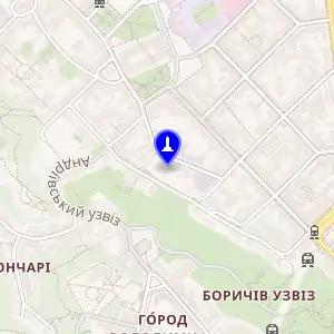 Розташована на території садиби, обмеженої зі сходу вулицею Покровською, з півдня — провулком Академіка Зелінського, а з заходу — вулицею Боричів Тік.
