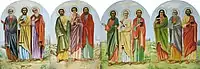 На другому ярусі розміщено чотири ікони із зображеннями дванадцятьох апостолів, по три апостоли на кожній. Над Царськими вратами зображено Бога-Отця, а над ним ікону «Тайна вечеря». Над іконою «Тайна вечеря» зображення Серафима над яким прикріплений механізм для опускання/підіймання ікони.