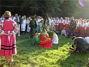 На Полтавщині пущений на воду вінок переймає наречений дівчини — «переємець», що має одружитися з нею[28].