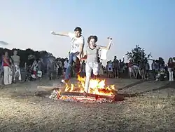 Обов'язково розкладається велике вогнище, через яке стрибають дівчата і хлопці поодинці або парами.