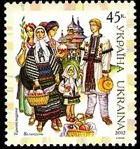 | Святкування | вночі і рано вранці богослужіння в церквах, святкування у колі сім'ї, народні гуляння, відвідування хресних батьків й родичів, могил рідних |
