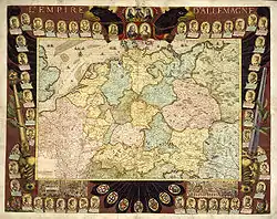 Колегія курфюрстів склалася в пізньому середньовіччі і була законодавчо оформлена «Золотою буллою» імператора Карла IV в 1356 р. Цим документом статус курфюрстів був наданий правителям семи німецьких князівств: архієпископам Майнца, Кельна і Тріра, королеві Чехії (Богемії)[21], герцогові Саксонії, пфальцграфу Рейнському і маркграфу Бранденбурга. Згідно з імперським правом, курфюрстський статус мали не особисто правителі або династії, а відповідні територіальні утворення. Право на надання титулу курфюрста було однією з найважливіших прерогатив імператорської влади. У 1632 р., в період Тридцятирічної війни, імператор позбавив Пфальц курфюрстського титулу і передав його Баварії, проте за умовами Вестфальського миру Пфальц знов став восьмим курфюрством[22]. У 1692 р. дев'ятий титул курфюрста був наданий герцогові Брауншвейг-Люнебурга, що було підтверджене рейхстагом в 1708 р. Остання зміна в колегії курфюрстів сталася на початку XIX століття, коли війська Наполеона завоювали лівобережжя Рейну, знищивши тим самим курфюрства Майнц, Трір і Кельн. Замість них за рішенням імперської депутації 1803 р. статус курфюрств був наданий Гессен-Касселю, Бадену, Вюртембергу, Зальцбургу і володінням ерцканцлера Карла Теодора Дальберга (Ашаффенбург—Регенсбург). Цей акт призвів до формування в колегії курфюрстів протестантської профранцузської більшості, що стало однією з причин краху імперії в 1806 р.