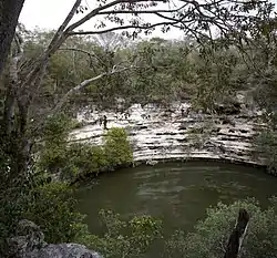 Являє собою велетенську круглу воронку діаметром понад 60 метрів. Її прямовисні стіни, складені з пластів вапняку, круто обриваються униз, до темно-зеленої води. Висота від краю до поверхні води відповідно до досліджень Дієго де Ланди становить 20 м, що потім підтвердилося, та 10 м глибини під трьома шарами донного мулу.