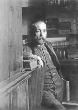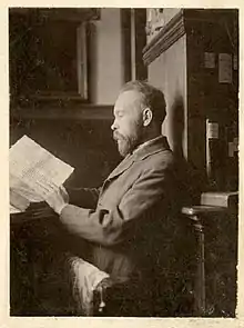 ![]() Іларіон Свєнціцький в бібіліотеці Національного музею. 1908 рік | |