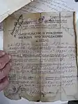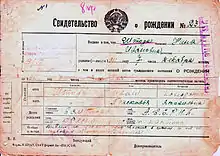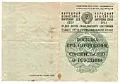Посвідка про народження УРСР, зразка 1940 року. Обкладинка