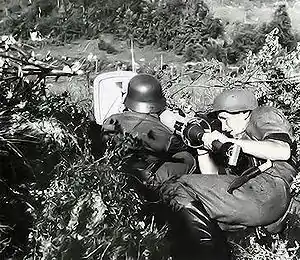 ![]() Фінські солдати ведуть бій. Літо 1944 Фінські солдати ведуть бій. Літо 1944 | |||||||