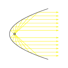 Схема відбивача лампи, що показує шлях, який світло зазвичай бере від джерела світла.