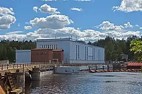 Інтегрований у греблю машинний зал обладнали чотирма турбінами типу Каплан потужністю по 23,3 МВт, які в 2009—2012 замінили на нові з показниками по 30,5 МВт. Вони використовують напір у 15 метрів та забезпечують виробництво 662 млн кВт-год електроенергії на рік.