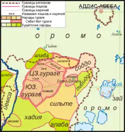 ![]() Поширення мови себат-бет гураге в Ефіопії. | |