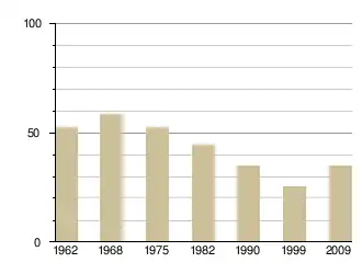 - Insee : historique des populations par commune depuis le recensement de 1962, наведено за французькою вікіпедією