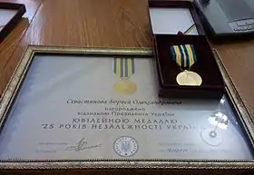 Указом Президента України № 336/2016 від 19 серпня 2016 року нагороджений ювілейною медаллю «25 років незалежності України».[5]
