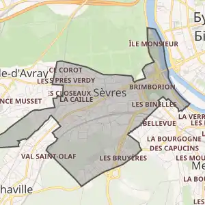 - Розташування муніципалітету Севр на мапі Франції та сусідні муніципалітети