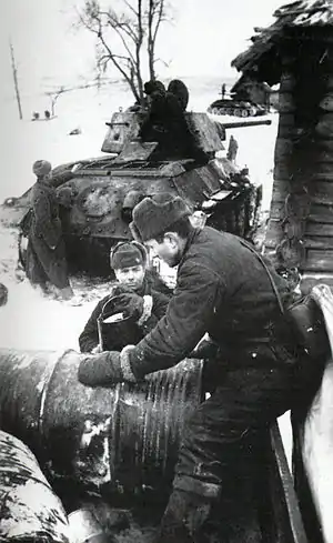 ![]() Дозаправлення танків Т-34 під час боїв Дозаправлення танків Т-34 під час боїв | |||||||