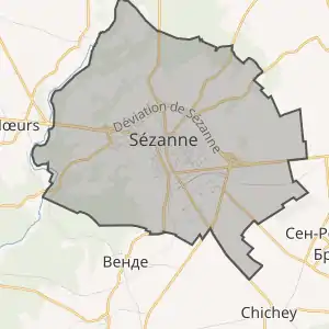 - Розташування муніципалітету Сезанн на мапі Франції та сусідні муніципалітети