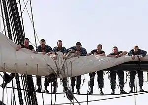 Прибирання вітрил на «Конституції». Чорні троси — обносні сезні