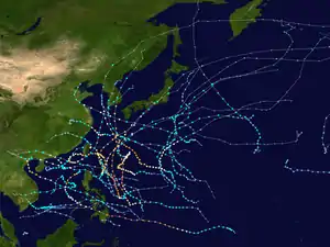 | Сон-Тінг (Офел) | 21 – 30 жовтня | Тайфун | 155 км/год (100 mph) | 945 hPa (27.91 inHg) | Палау, Філіппіни, Китай, В'єтнам | 18 400 000 $ | 35 | |