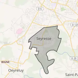 - Розташування муніципалітету Сейресс на мапі Франції та сусідні муніципалітети