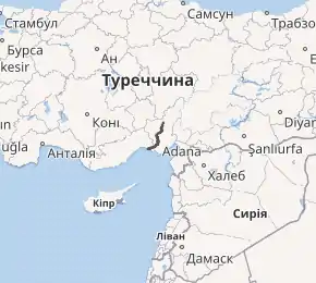 | • координати | 36°43′31″ пн. ш. 34°54′27″ сх. д. |