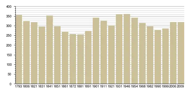 Динаміка населення (base Cassini de l'EHESS pour les nombres retenus jusque 1962[3], base Insee à partir de 1968 (population sans doubles comptes puis population municipale à partir de 2006)[4] · [5] ):