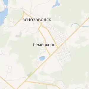 Село Семенково входить до складу міського поселення Краснозаводськ, воно розташовано на захід від Краснозаводська. Найближчі населені пункти Краснозаводськ, Рогачово.[1]