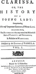 У 1747 році з'явився найкращий роман Річардсона «Клариса, або Історія юної леді» («Clarissa; or, the History of a Young Lady: comprehending the most important concerns of private life; and particularly shewing the distresses that may attend the misconduct both of parents and children, in relation to marriage»). На відміну від першого, він мав трагічний кінець й складніший зміст. Складнішою стала і форма роману. Це також роман у листах, але це вже листи не однієї особи, а листування багатьох осіб; у листах висвітлені різноманітні, іноді протилежні точки зору, різноманітні характери. Психологічна майстерність письменника значно зросла. Річардсону вдалося силою літературного таланту перемогти, подолати власну схильність до моралізаторства. Роман виявився яскравою та щирою картиною «приватного життя».