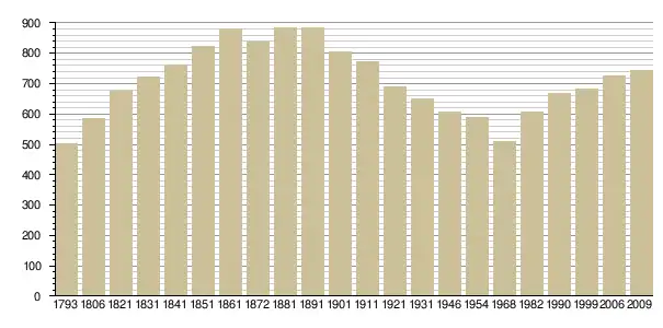 Динаміка населення (INSEE[3] і Cassini[4] ):