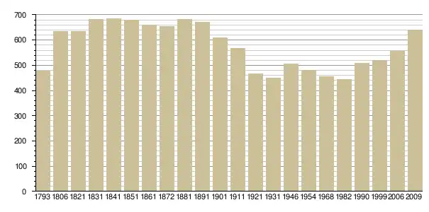 Динаміка населення (base Cassini de l'EHESS pour les nombres retenus jusque 1962[3], base Insee à partir de 1968 (population sans doubles comptes puis population municipale à partir de 2006)[4] · [5] ):