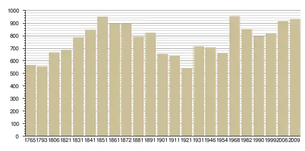 Динаміка населення (Baratier, Duby & Hildesheimer pour l’Ancien Régime ; Insee[3], EHESS[4] pour les chiffres issus des recensements légaux ):