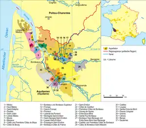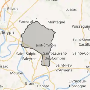 - Розташування муніципалітету Сент-Емільйон на мапі Франції та сусідні муніципалітети