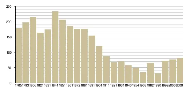 Динаміка населення (Baratier, Duby & Hildesheimer pour l’Ancien Régime ; Insee[3], EHESS[4] pour les chiffres issus des recensements légaux ):