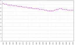 Народжуваність — 14,2 на 1000 (фертильність — 1,79 народжень на жінку);