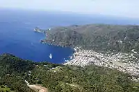 По всій довжині острова, з півночі на південь, тягнеться центральний гірський ланцюг Барр-де-л'Іль-Рідж з висотами від 400 до 900 м, досягаючи найбільшої висоти на горі Жімі (950 м) і в вулканічному масиві Пітон (Грос-Пітон — 797 м, Пти-Пітон — 750 м, Морн-Бонін — 640 м) на південному заході. У цьому ж районі в достатку зустрічаються сліди активної вулканічної діяльності — гарячі сірчані джерела, еродовані лавові поля, виходи газу, відкладення сірки. Схили вулканічного масиву зарості пишними тропічними лісами, а численні короткі річки формують широкі і родючі долини.