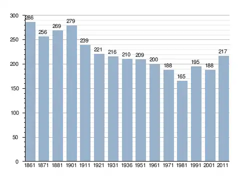 Станом на 31 грудня 2014 року в муніципалітеті офіційно проживало 14 іноземців з 7 країн, серед них 6 громадян країн Євросоюзу та 2 громадяни України.[4]