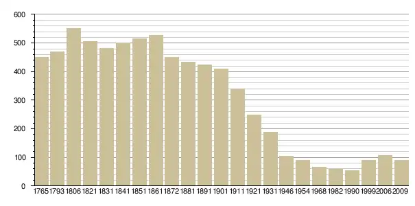 Динаміка населення (Baratier, Duby & Hildesheimer pour l’Ancien Régime ; Insee[3], EHESS[4] pour les chiffres issus des recensements légaux ):