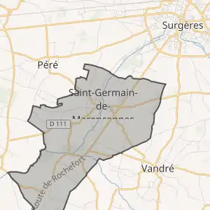 Муніципалітет був розташований на відстані[2] близько 390 км на південний захід від Парижа, 105 км на південний захід від Пуатьє, 31 км на схід від Ла-Рошель.