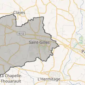 - Розташування муніципалітету Сен-Жиль на мапі Франції та сусідні муніципалітети