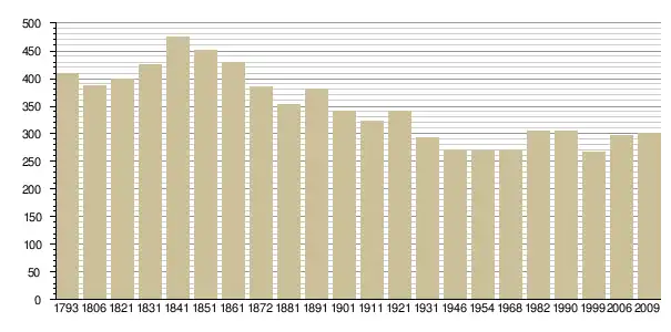 Динаміка населення (base Cassini de l'EHESS pour les nombres retenus jusque 1962[3], base Insee à partir de 1968 (population sans doubles comptes puis population municipale à partir de 2006)[4] · [5] ):
