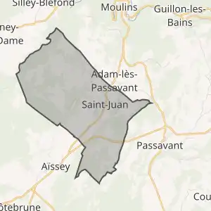- Розташування муніципалітету Сен-Жуан на мапі Франції та сусідні муніципалітети
