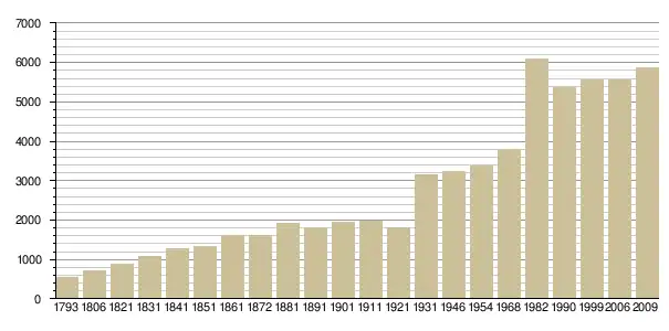 Динаміка населення (base Cassini de l'EHESS pour les nombres retenus jusque 1962[3], base Insee à partir de 1968 (population sans doubles comptes puis population municipale à partir de 2006)[4] · [5] ):