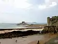 Plage de l'Éventail vue des remparts, recouverte par une marée de coefficient 106.