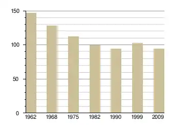 - Insee : historique des populations par commune depuis le recensement de 1962, наведено за французькою вікіпедією