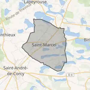 - Розташування муніципалітету Сен-Марсель на мапі Франції та сусідні муніципалітети