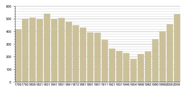Динаміка населення (Baratier, Duby & Hildesheimer pour l’Ancien Régime ; Insee[3], EHESS[4] pour les chiffres issus des recensements légaux ):