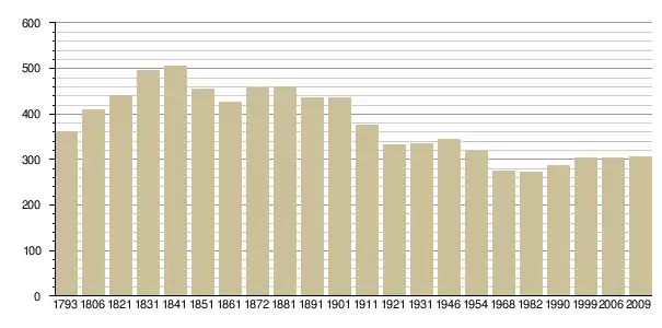 Динаміка населення (base Cassini de l'EHESS pour les nombres retenus jusque 1962[3], base Insee à partir de 1968 (population sans doubles comptes puis population municipale à partir de 2006)[4] · [5] ):