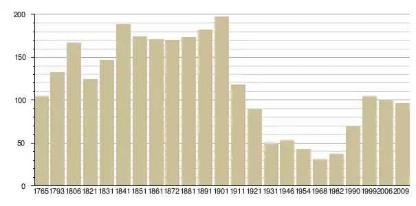 Динаміка населення (Baratier, Duby & Hildesheimer pour l’Ancien Régime[3] ; Insee[4], EHESS pour les chiffres issus des recensements légaux ):