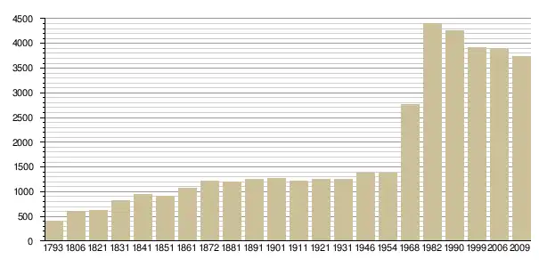 Динаміка населення (base Cassini de l'EHESS pour les nombres retenus jusque 1962[3], base Insee à partir de 1968 (population sans doubles comptes puis population municipale à partir de 2006)[4] · [5] ):