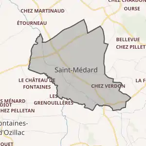 - Розташування муніципалітету Сен-Медар на мапі Франції та сусідні муніципалітети